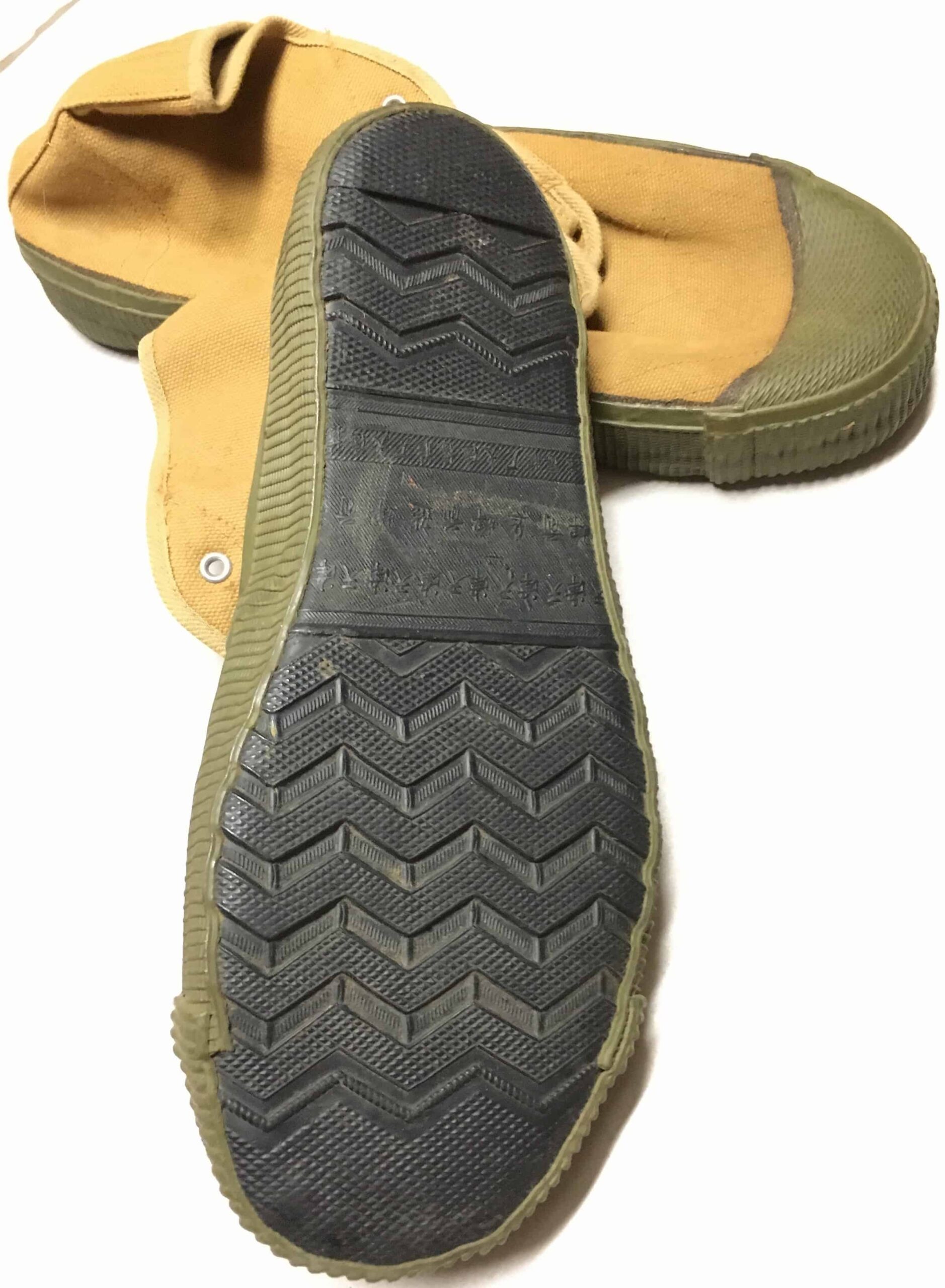 You will see many pictures of the Viet Minh wearing this shoe. They were also worn in North Vietnam. This shoe, with its slick sole, was not standard issue to the NVA in the South. There, the NVA wore this same style of upper but with a cleated rubber sole better suited to jungle condition. It was however worn by NVA and the population in the North. Many photographs document this in Hanoi, Hai Phong, etc. being worn by military and paramilitary forces