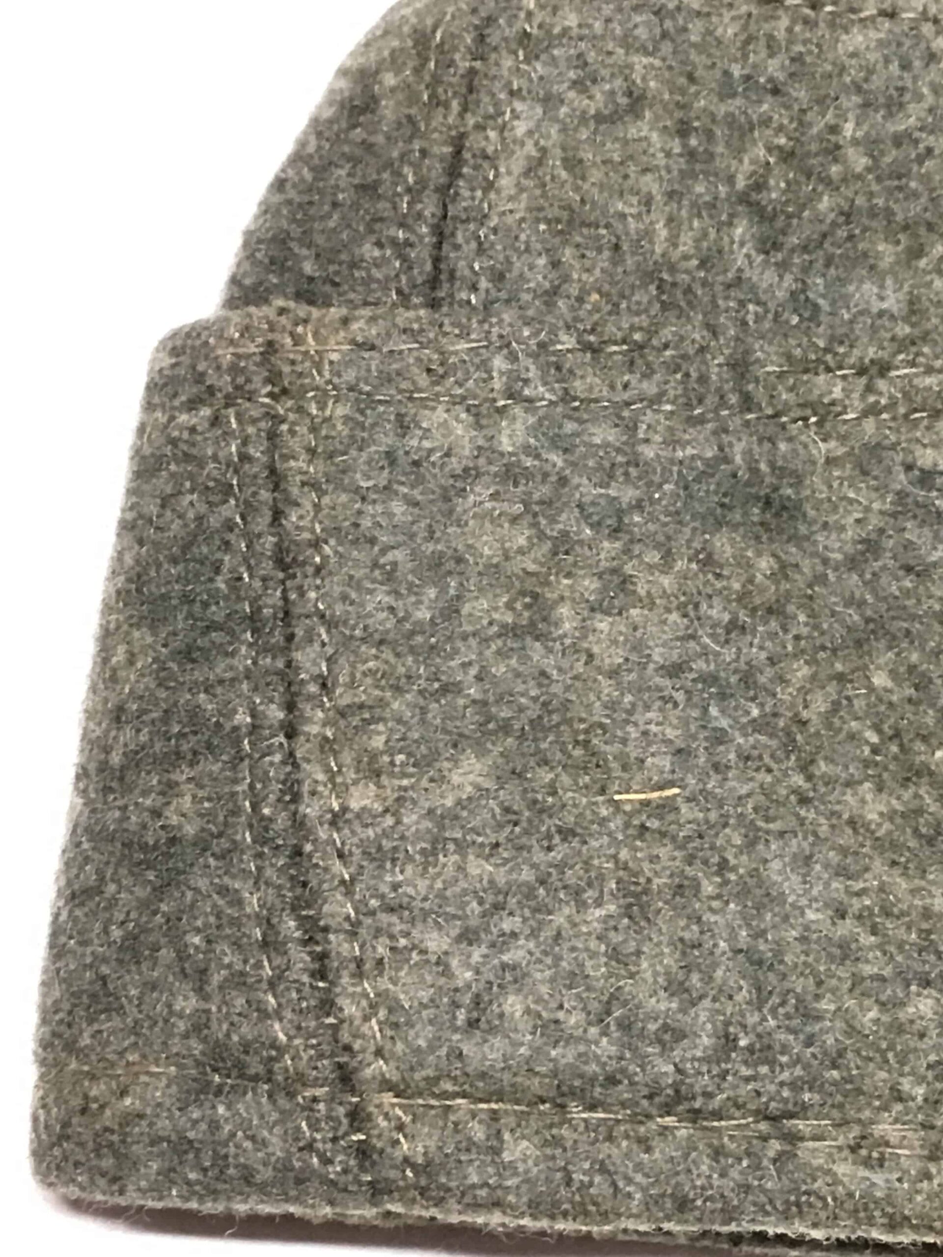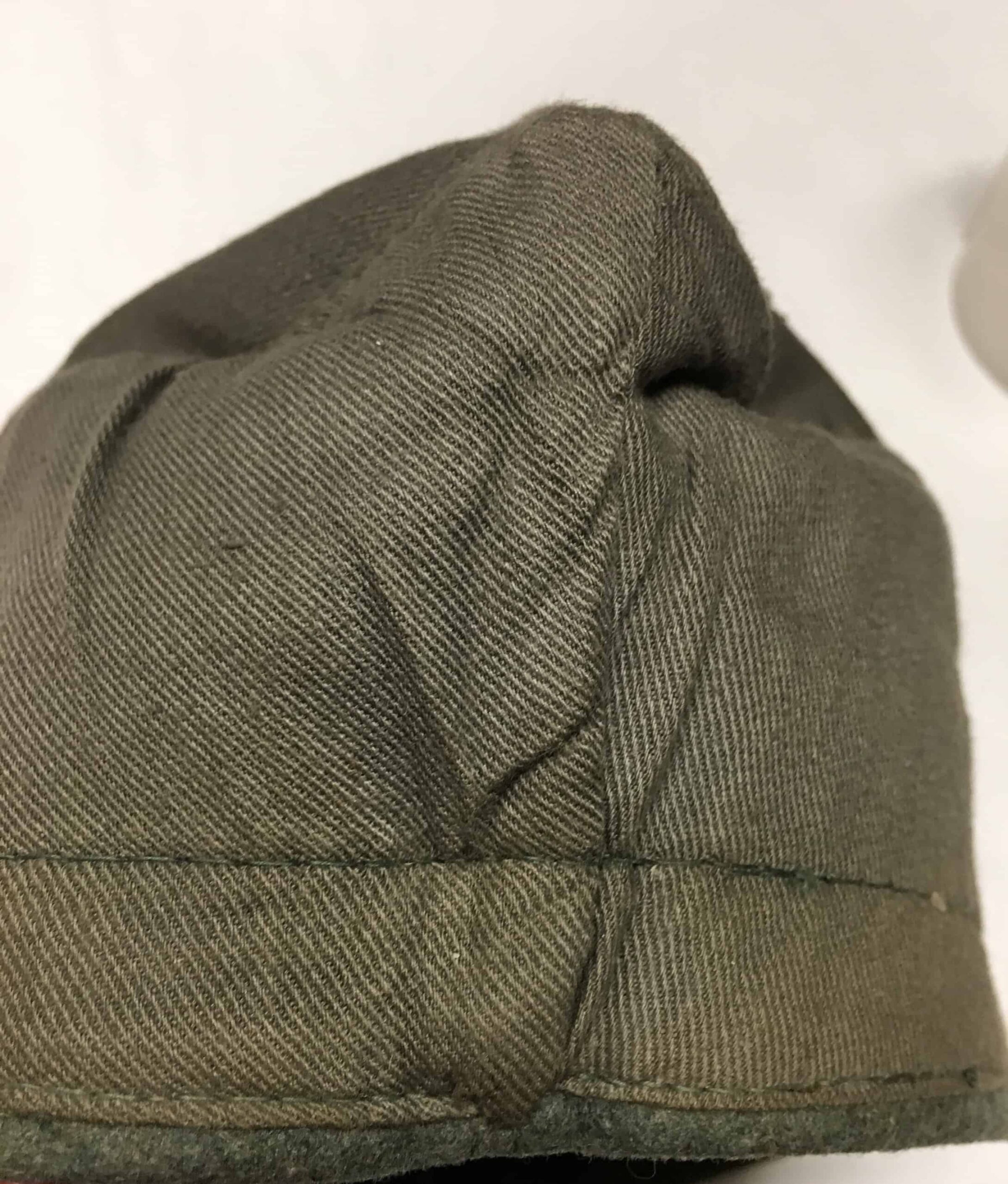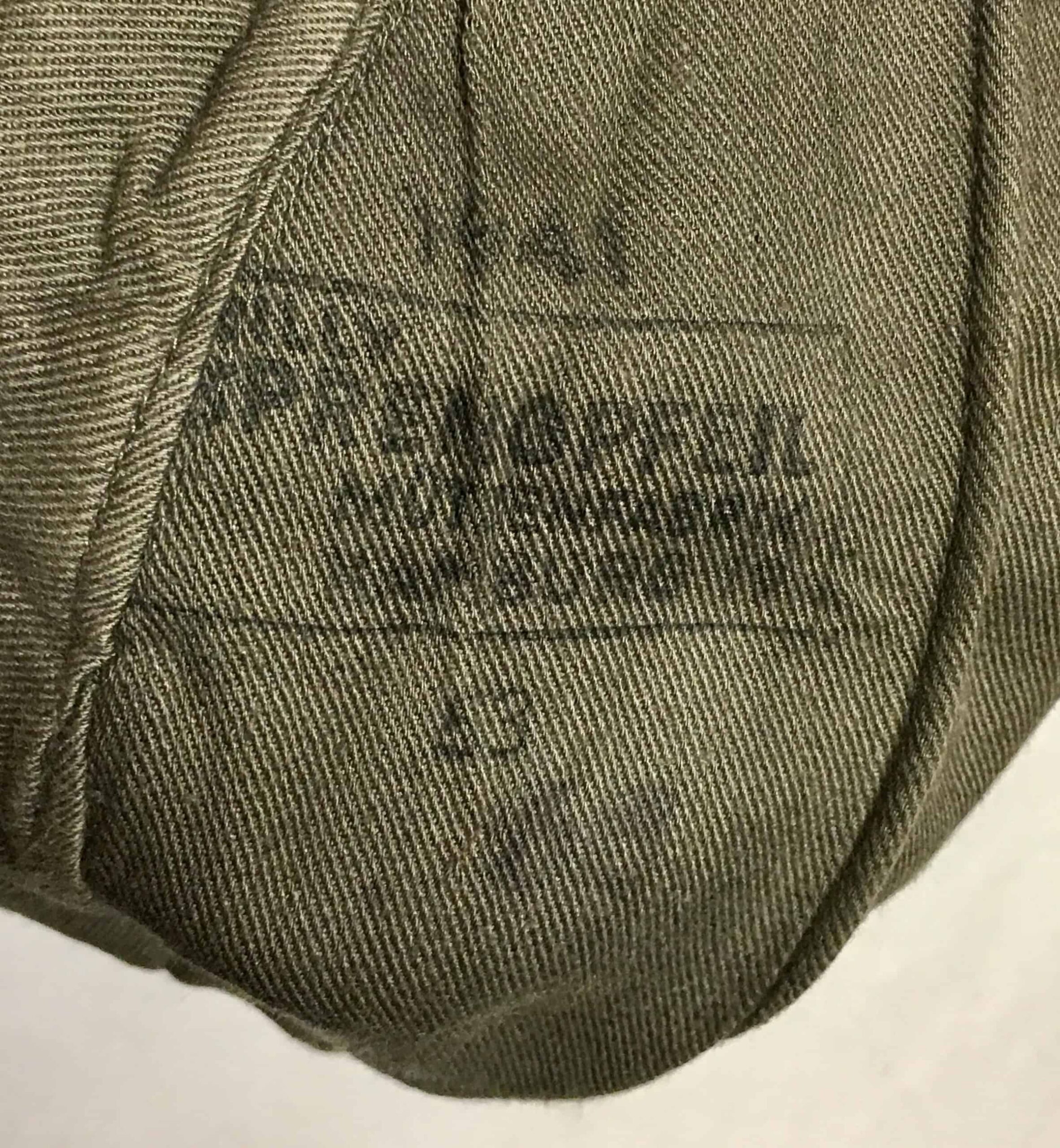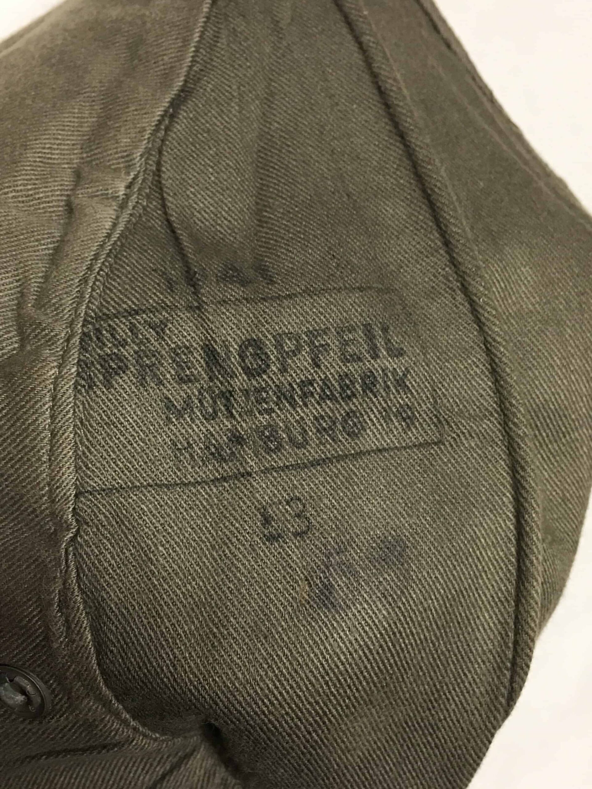 A nice early issue overseas cap with all correct insignia and a nice 1941 maker's mark from Hamburg. Bevo insignia sewn to the front prior to assembly of the hat (you do not see any bobbin thread).