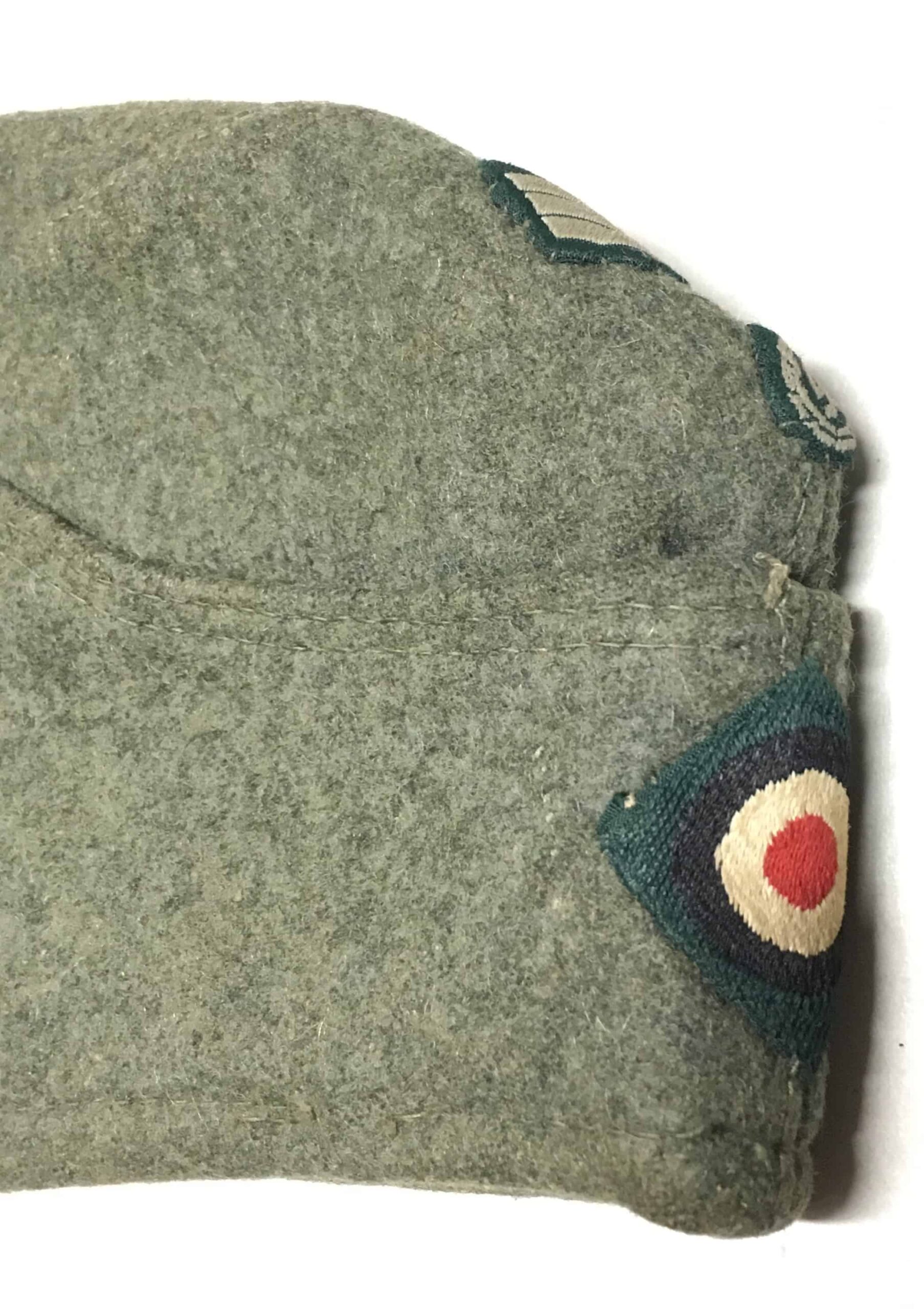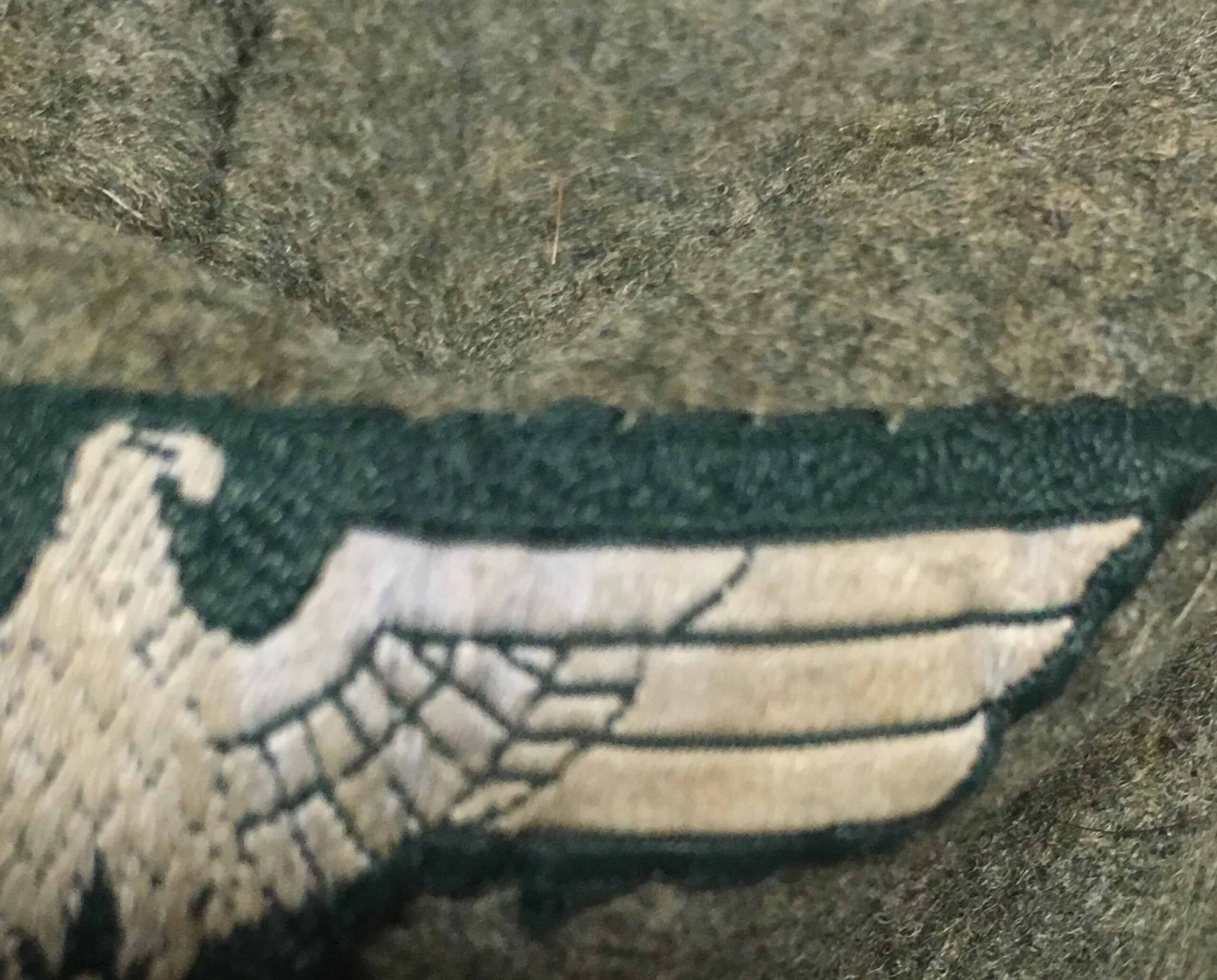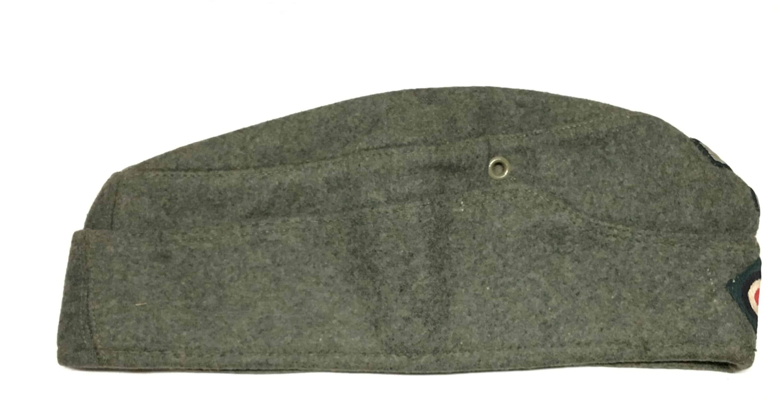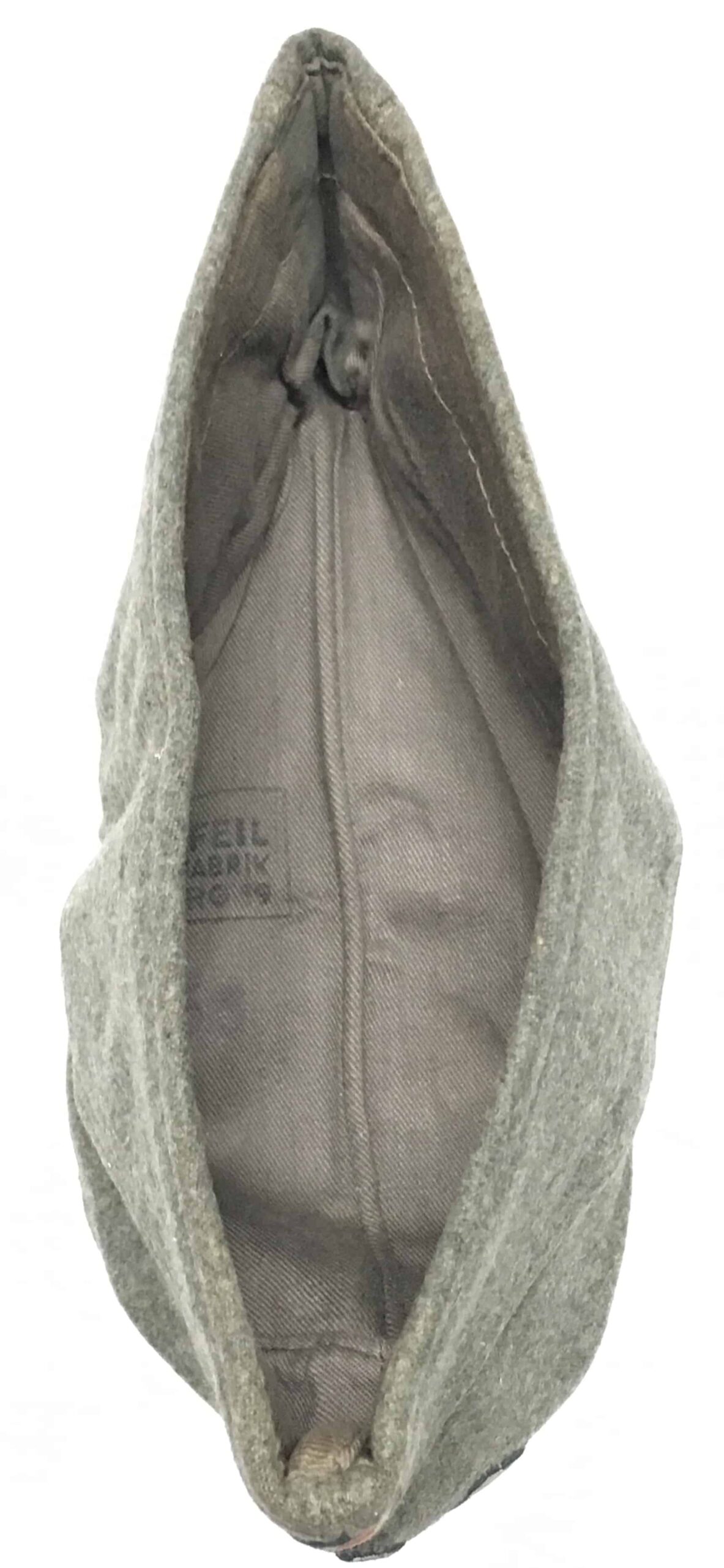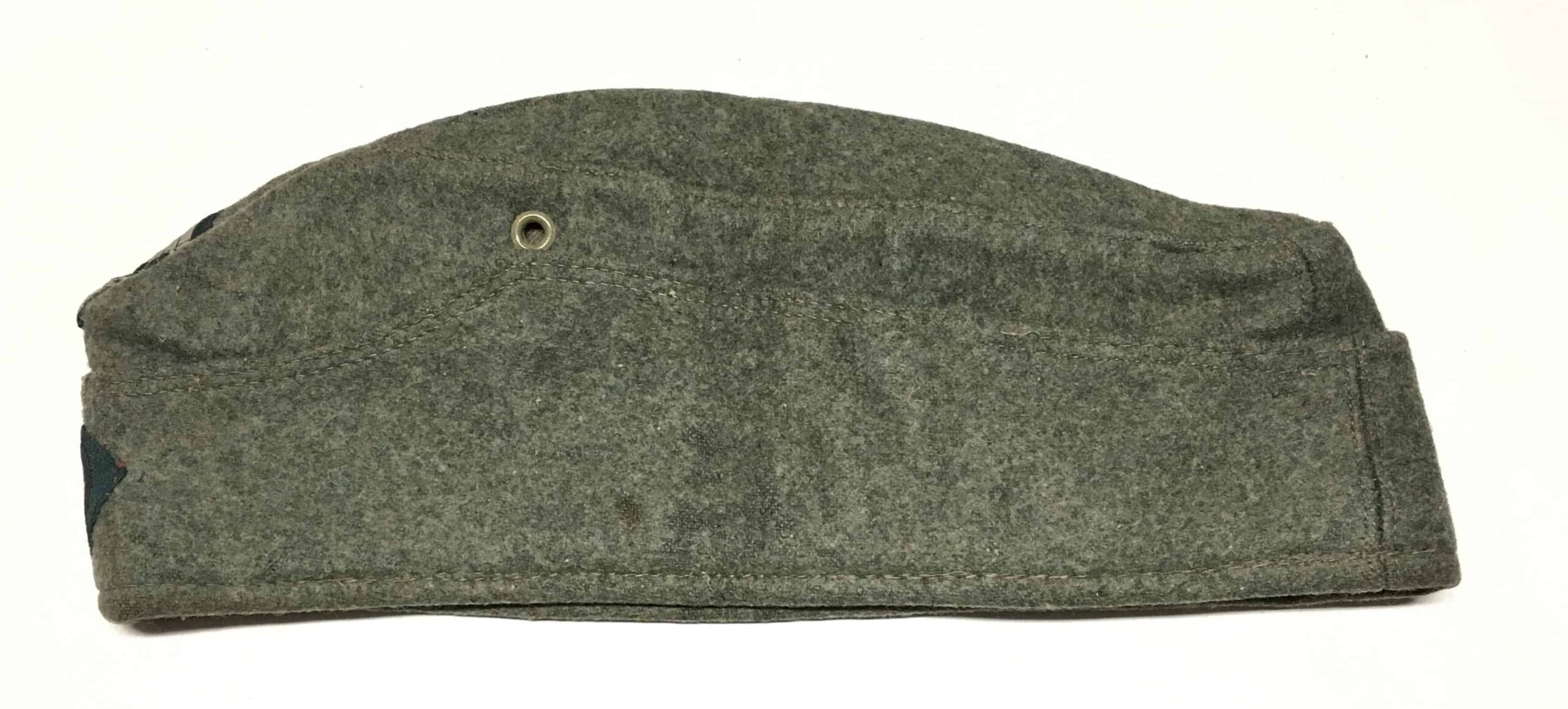 A nice early issue overseas cap with all correct insignia and a nice 1941 maker's mark from Hamburg. Bevo insignia sewn to the front prior to assembly of the hat (you do not see any bobbin thread).