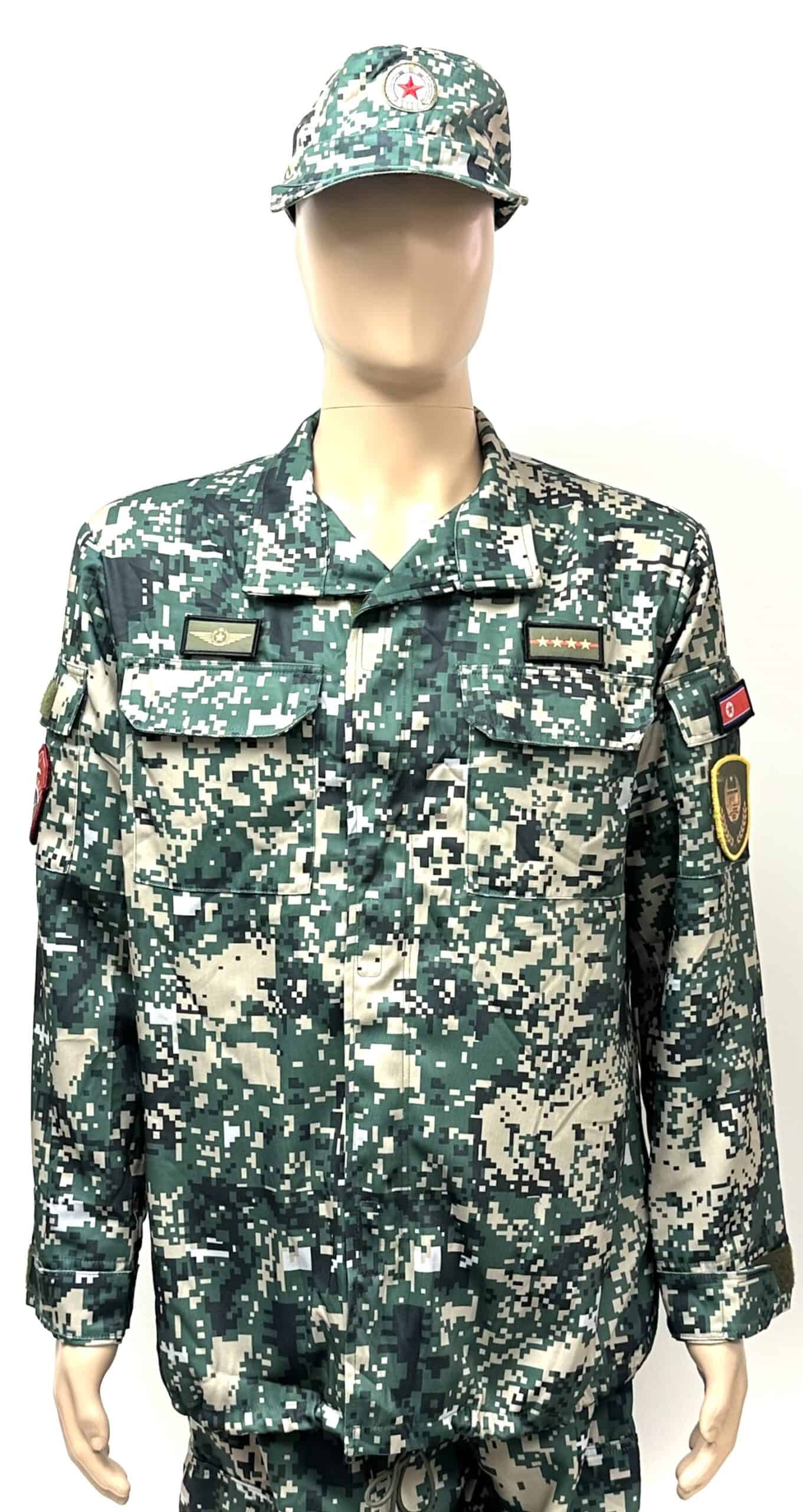 North Korean Digital Camouflage Uniform with Patches & Hat