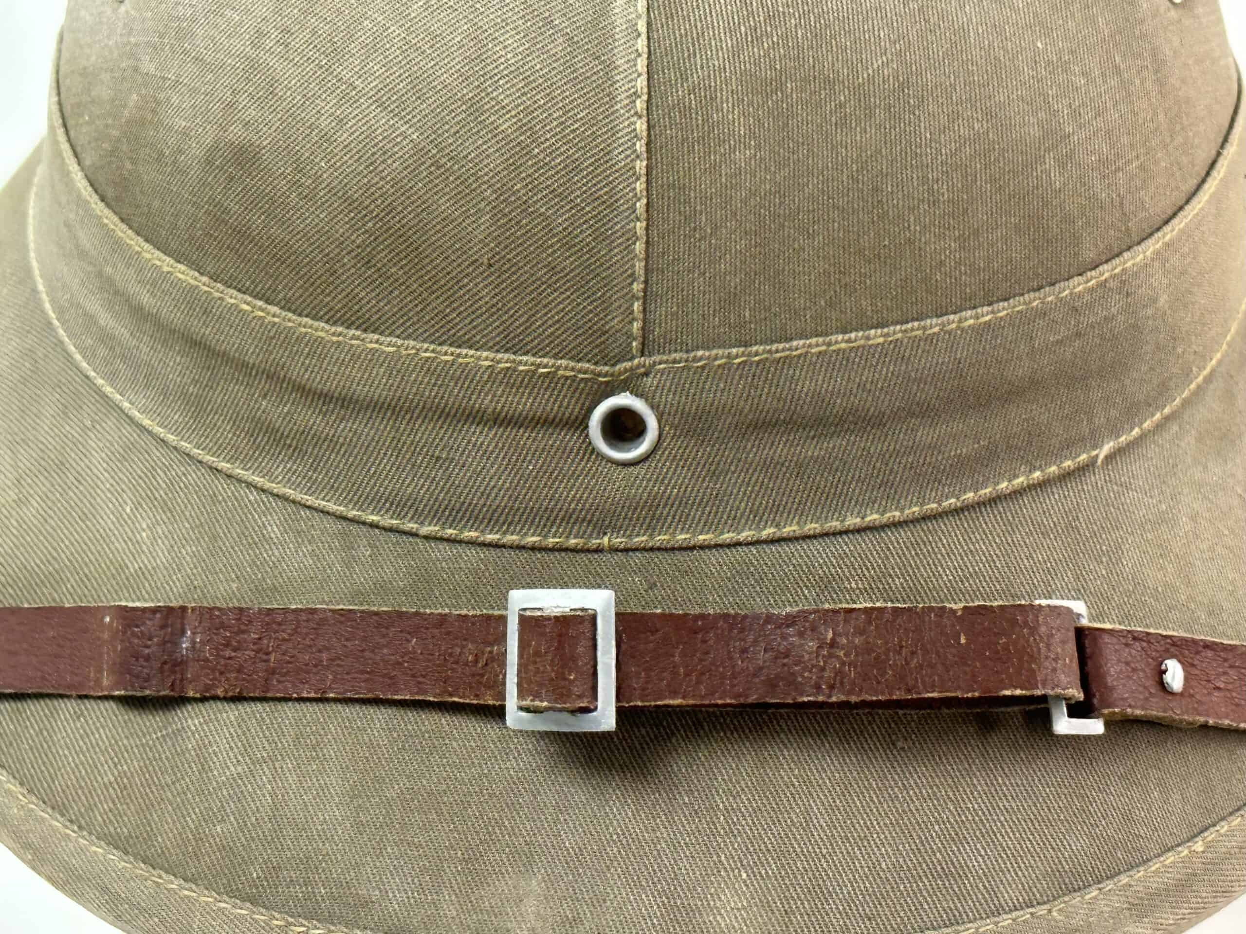 Here is an early NVA CORK-PITH Sun Helmet with all the standard features including a bamboo sweatband, leather chinstrap, aluminum chinstrap buckle, aluminum grommets.