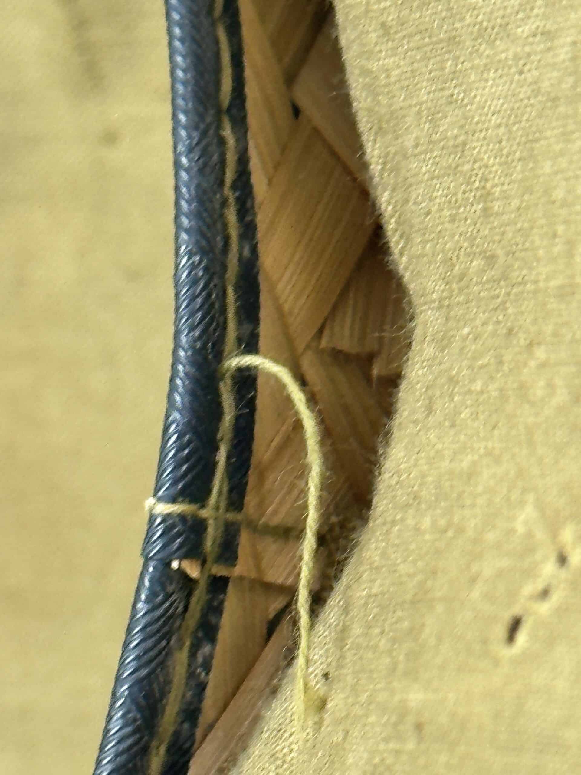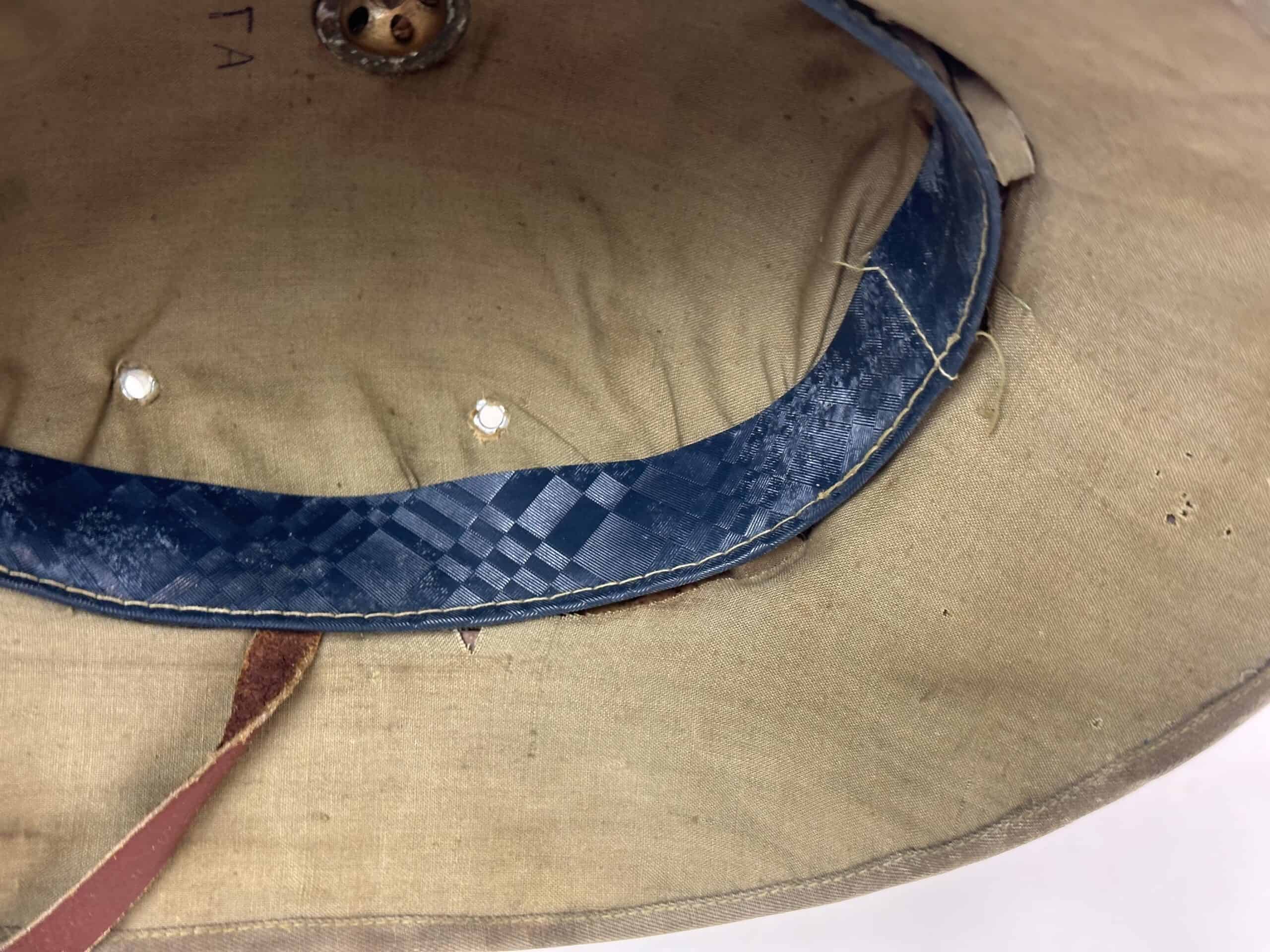 The interior of these early helmets remained covered in cloth like the cork helmet. There are sub-variant, like this one, with bamboo sweatbands that do not have the interior lining.