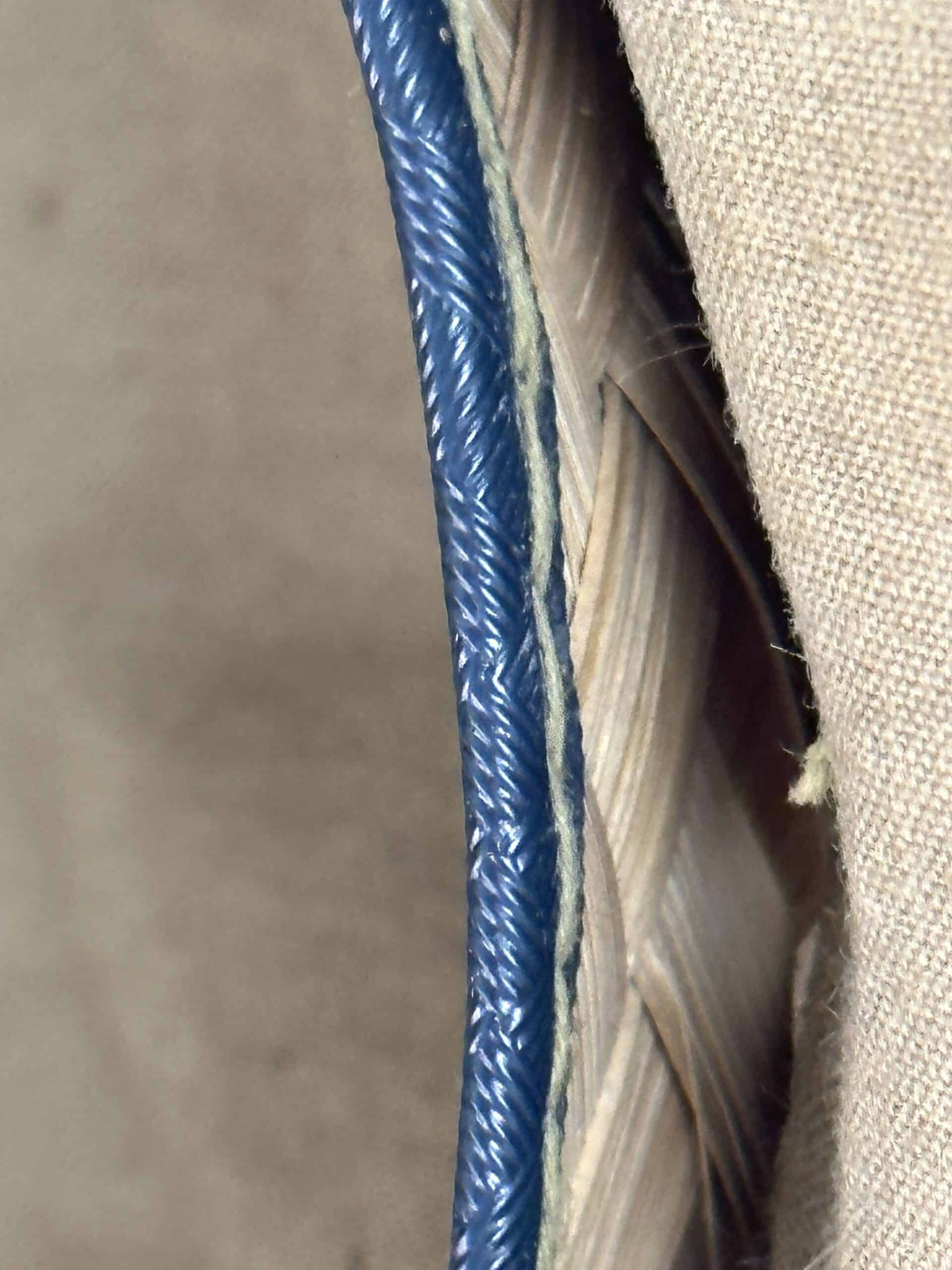 These early cork sun helmets had non-adjustable bamboo sweatbands made of thin strips of interwoven bamboo. A thin layer of plastic sheeting covered the bamboo. The plastic sheeting came in various colors like green, cream, maroon and blue. The plastic sheeting covers the bamboo so the wearer’s skin is not rubbed and chafed by the hard bamboo underneath.