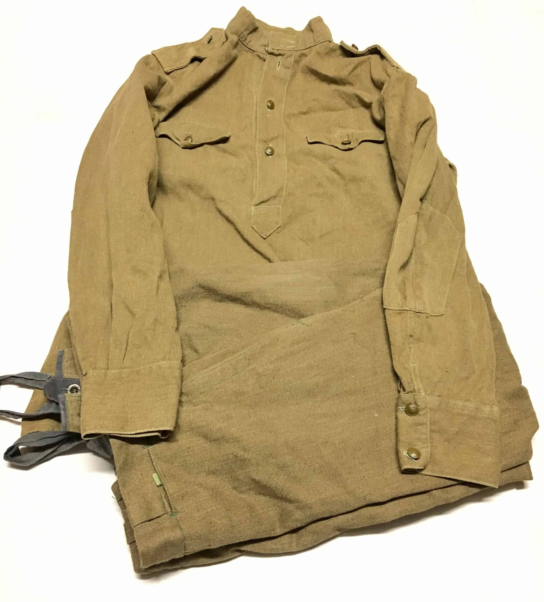 This is the Model 1943 Soviet Uniform worn through much of WWII and well into the Cold War. This style did not change until late 1969. Then the pullover shirt was changed to a fully button front and the baggy riding pants were changed to a straight leg trouser.