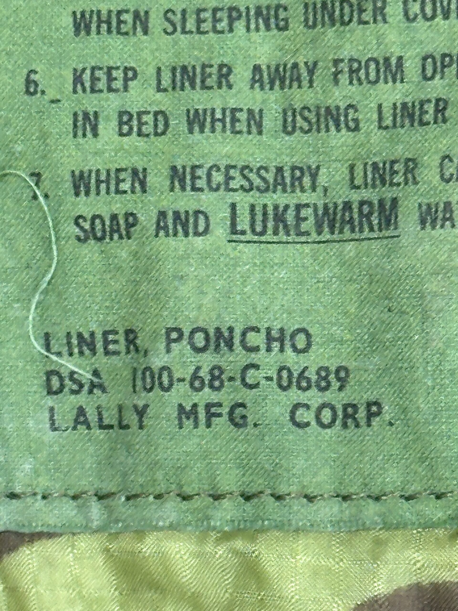 US 1968 ERDL Camouflage Poncho Liner Unissued