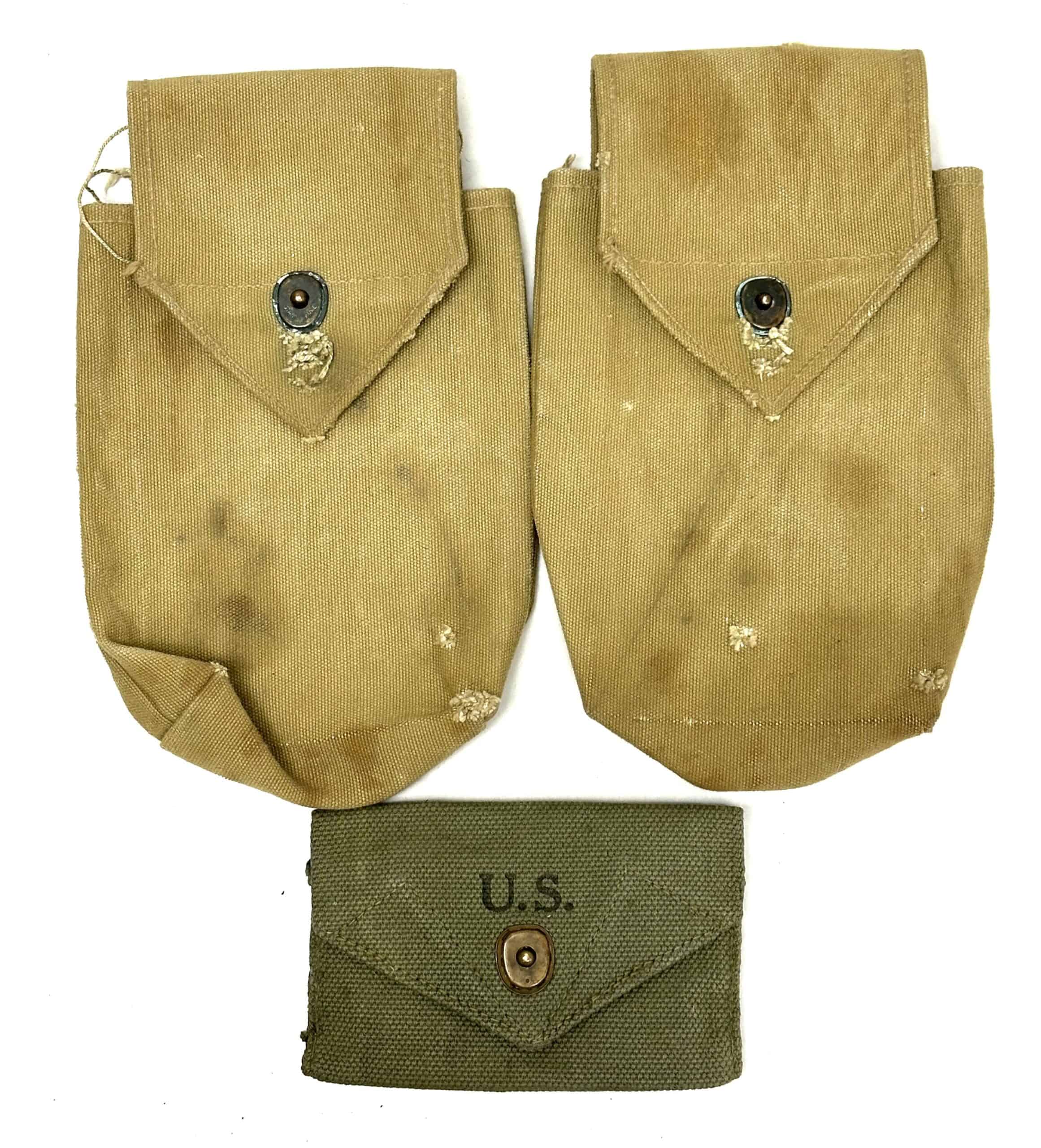 US WW2 Airborne Rigger Made Thompson Pouches & First Aid Pouch