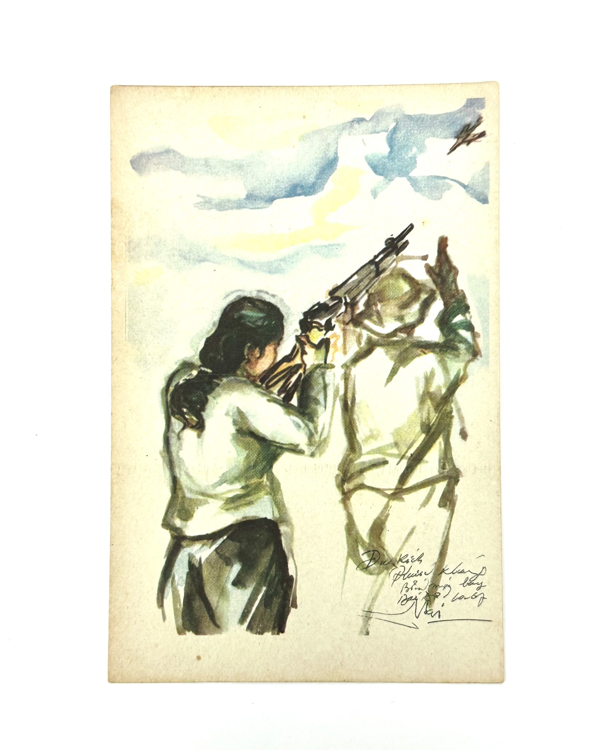 Viet Cong Color Postcard 1970 Female Guerilla with MAS36 Shooting at Helicopter