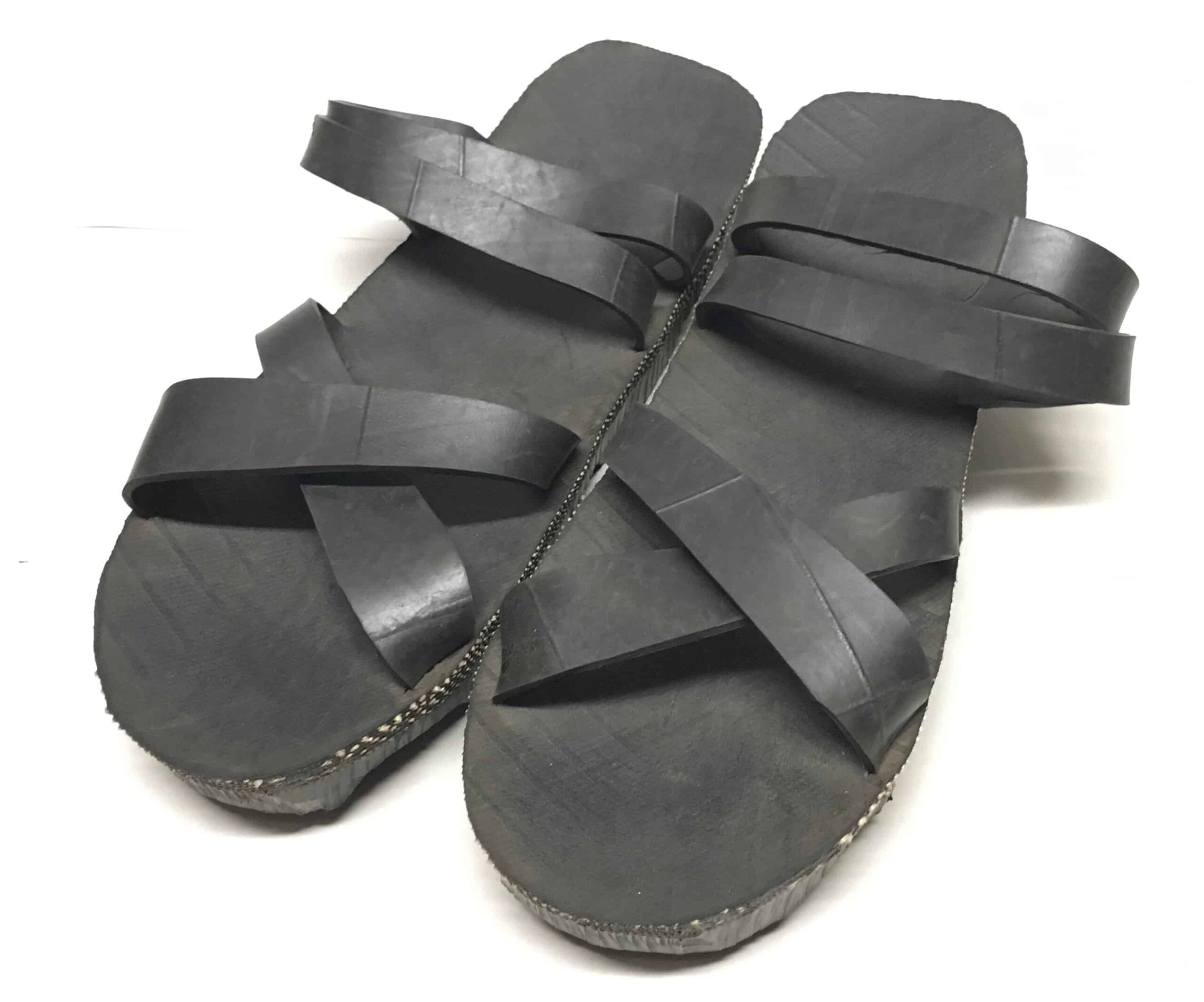 Ho Chi Minh sandals were made using bias ply rubber tires as the sole and cut inner tubes for the straps. They were worn by the NVA when their issues sneakers wore out and by communists it the North and South.