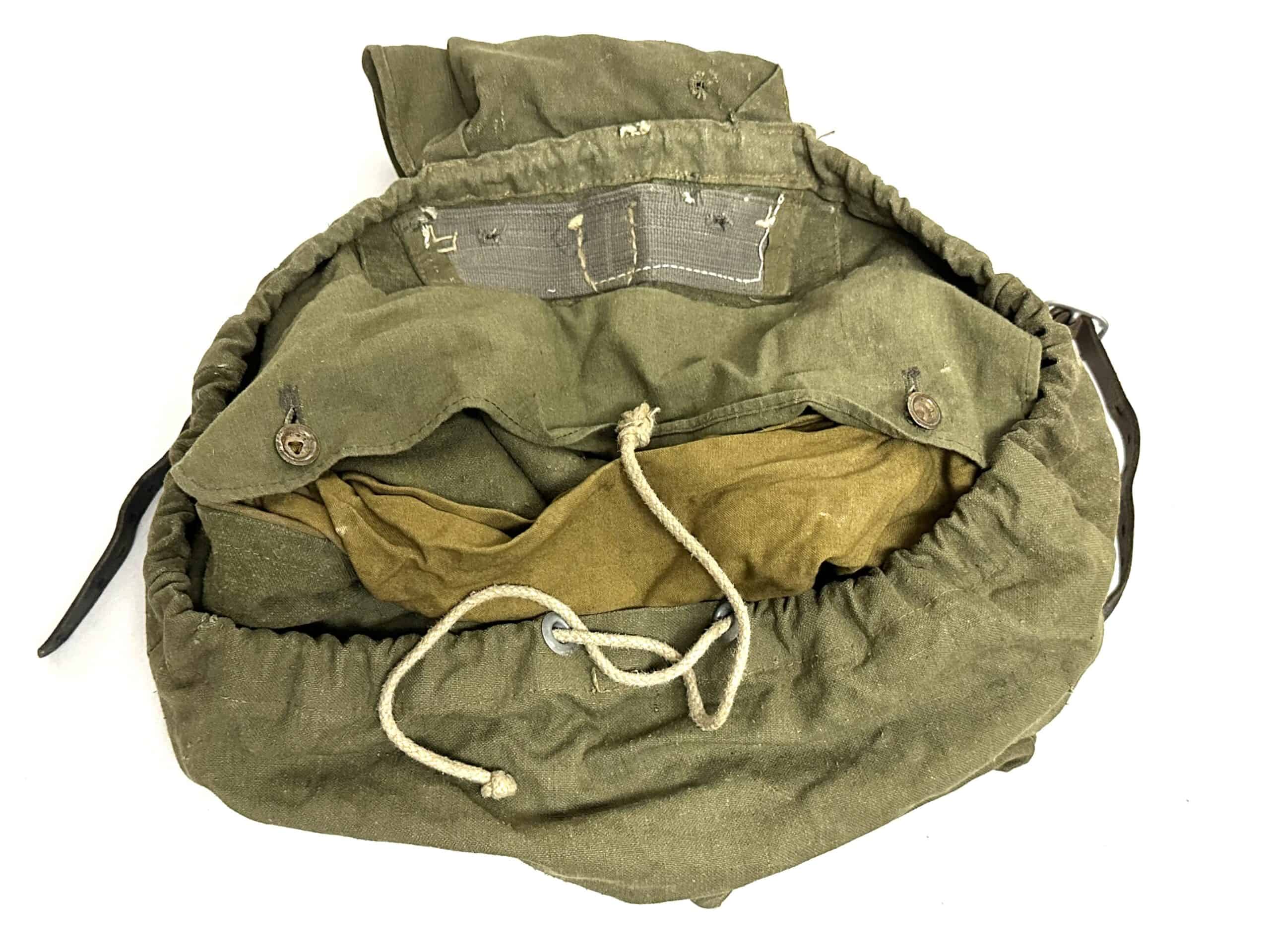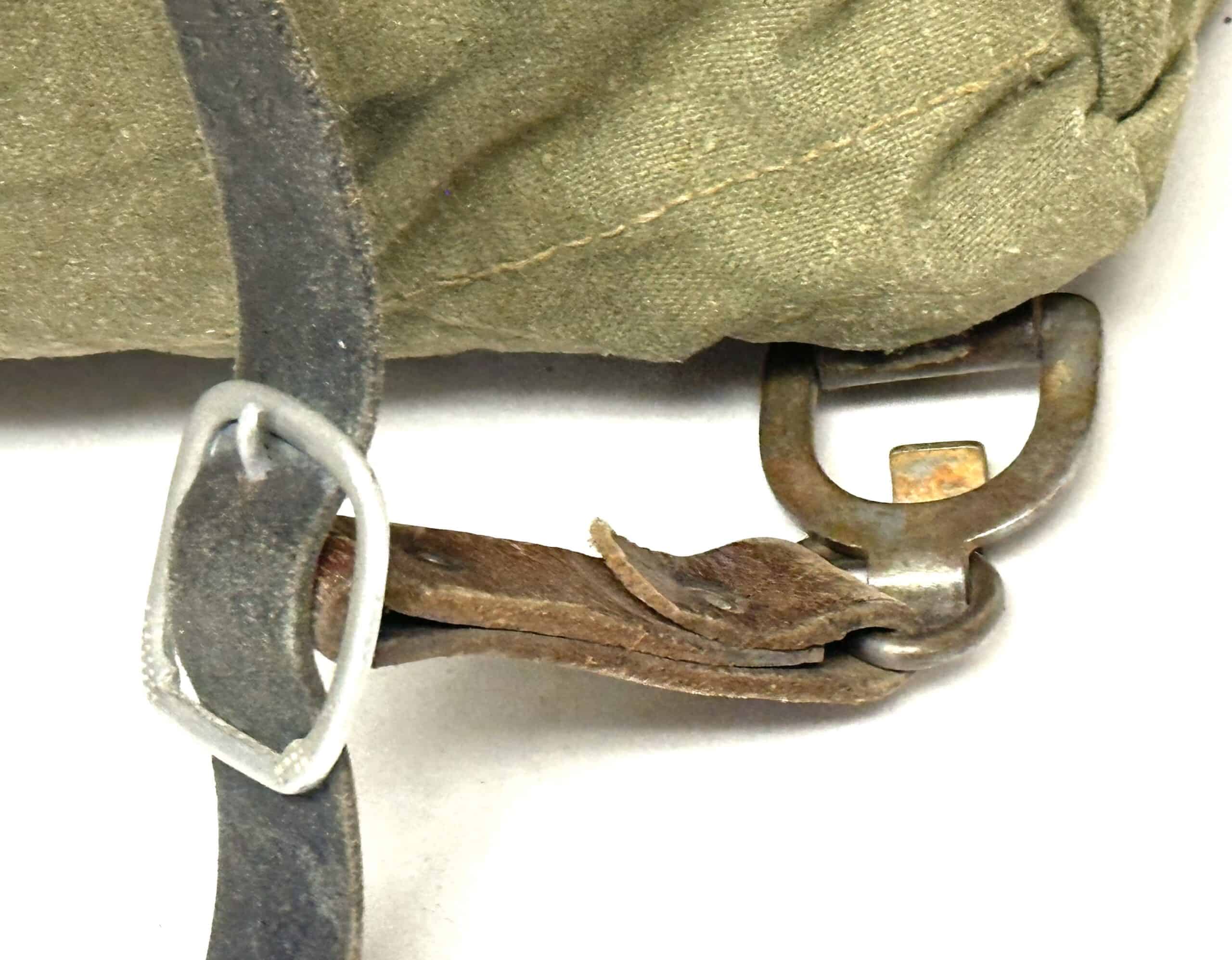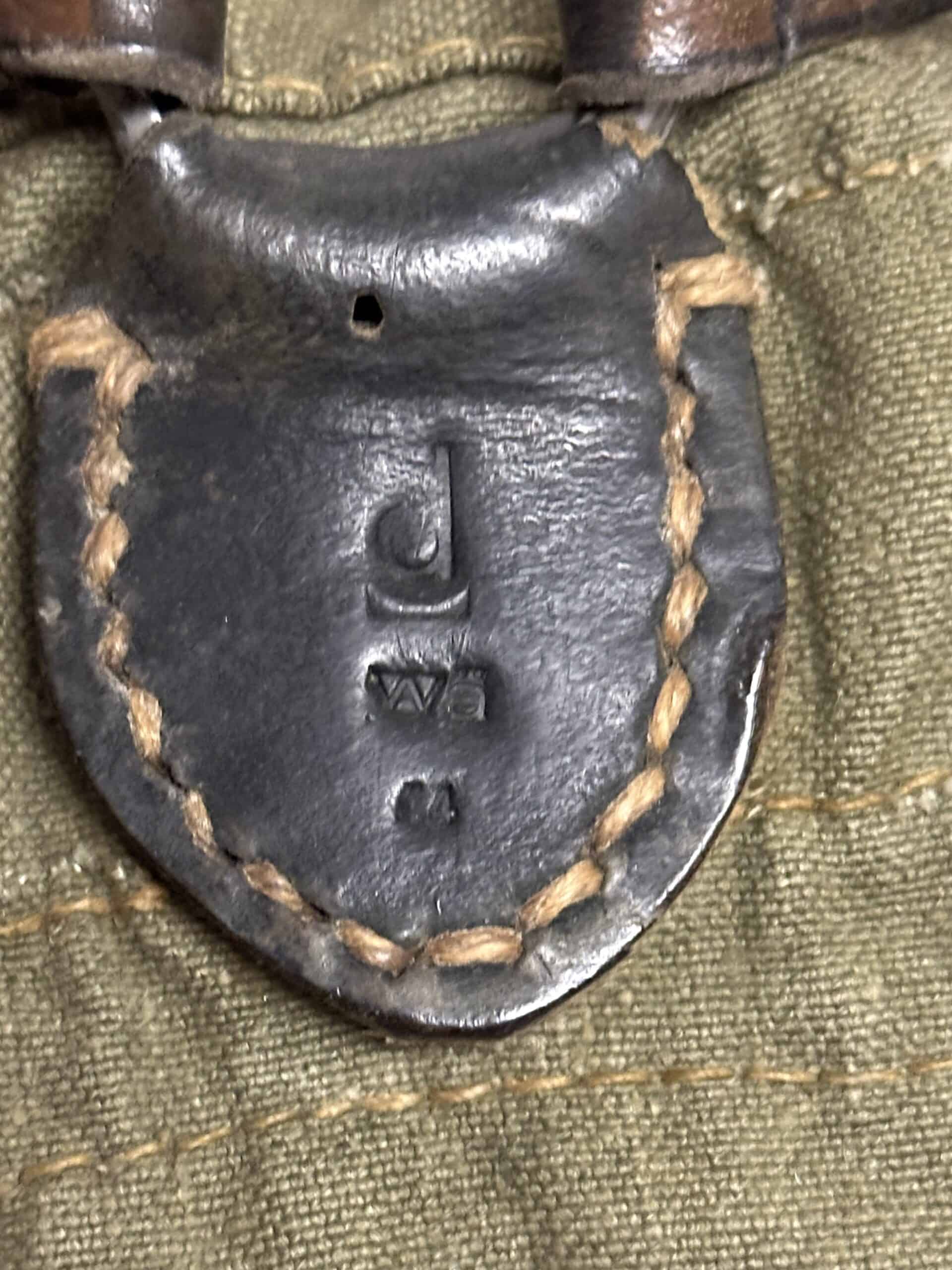 This one has two external pockets, is dated 1944, and has seen a little bit of use. The shoulder straps are present as are all the buckles.